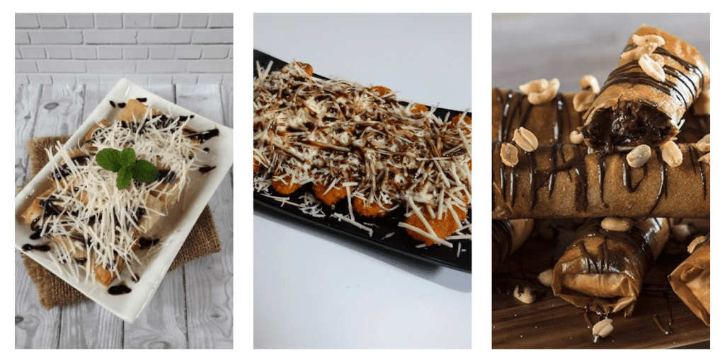 Popia pisang adalah kombinasi pisang dengan kulit lumpia yang menghasilkan tekstur crispy di luar dan lembut di dalam. Produk ini terasa lebih modern dan cocok untuk pasar kekinian.