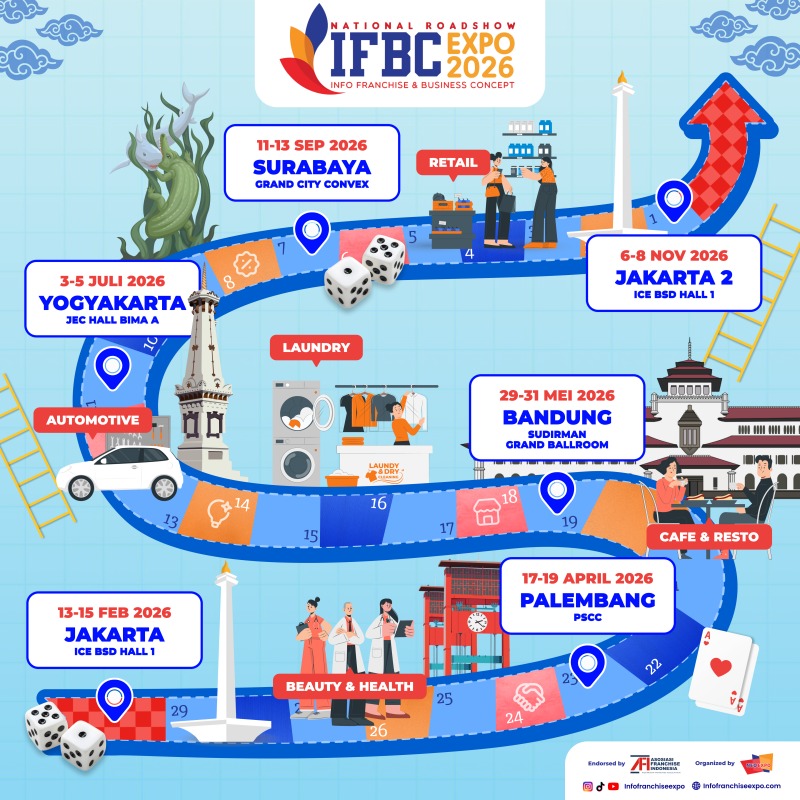 Awali perjalanan bisnis Anda bersama IFBC Tour 2026 dan temukan potensi terbaik untuk masa depan usaha Anda.